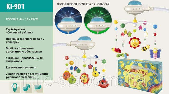 Карусель-проектор (мобіль) на ліжечко з нічником проектор зоряного неба "На добраніч" KI-901