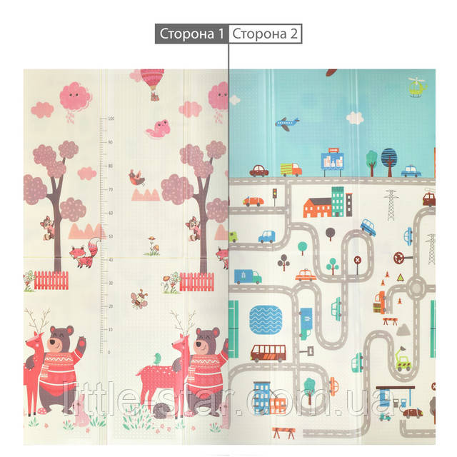 Дитячий розвиваючий ігровий двосторонній термо килимок розміром 1800х2000х10 мм, який легко складається і поміщається в спеціальний чохол-сумку